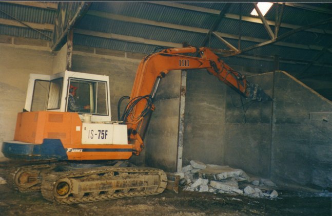 seperated the fertiliser. This picture shows Owen Rush removing the walls with his digger.