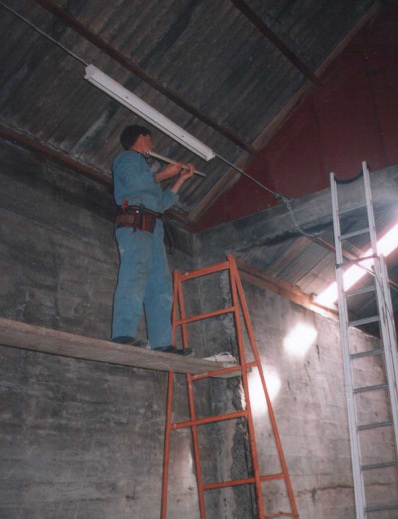 along the full length of the shed. Michael Ireland is busy fitting these and they will make the shed very easy to use at night.