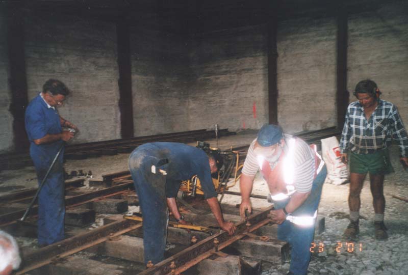 All three lines have been laid in the shed now (only two when picture was taken) and we have most of the wagons under cover.