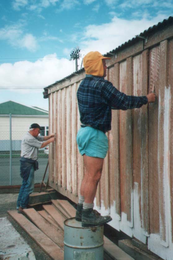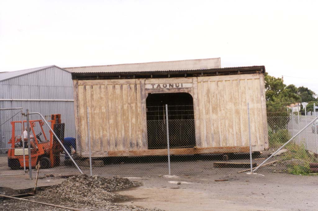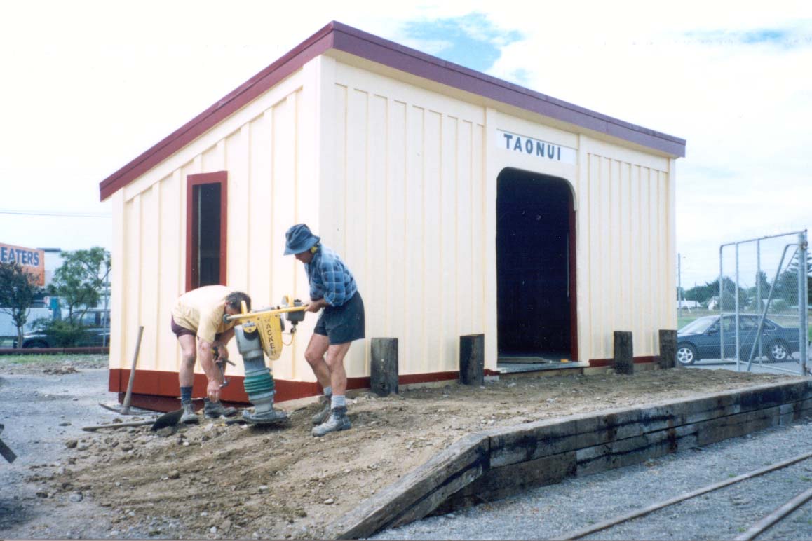 The station was sited between Feilding and Bunnythorpe and had been stored not far from its orginal location on a farmer's property. The farmer donated the station to us and we have made it part of our depot. Bob Judd and friends have worked hard and restored the ex-Taonui Railway Station.