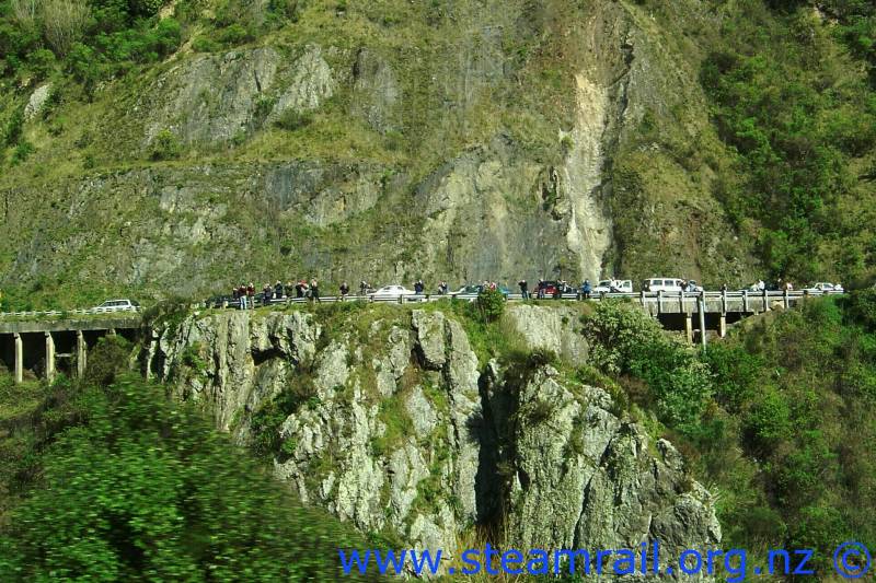 | The train chasers in the Manawatu Gorge. |