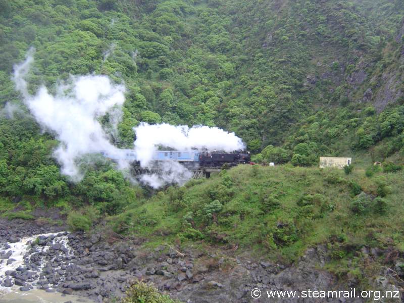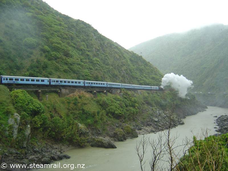 | Wab794 hauled train alongside the Manawatu River in the Gorge. | |