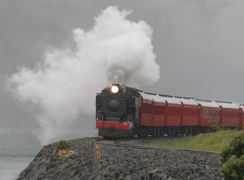 | We begin our climb out of Oamaru at 1545, waved off by a large crowd of well wishers at the station and along the roadside. Photo Kevin Evans . |
