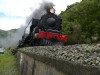 On the Labour Weekend 2007 the Wab with its two passenger cars, AG (Power & Luggage van), RB (coal wagon) and UC (water tanker) travelled to Gisborne for a scenic trip through rugged