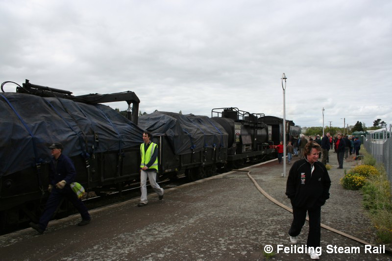 Fire hoses out to full the water tanks at Waipukurau - Friday 19th October 2007