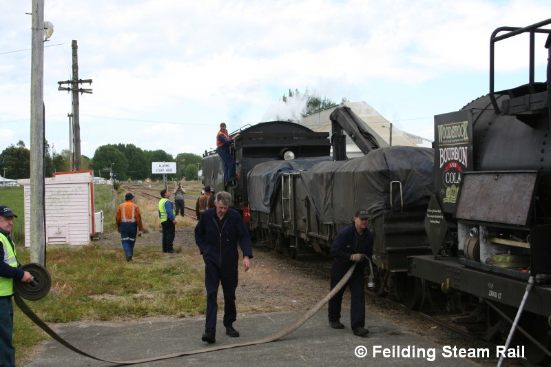 Kevin with a fire hose ready to fill the UC tanker at Wairoa - Monday 22nd October 2007