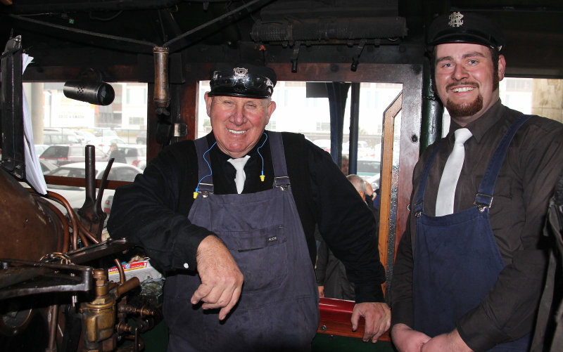 Phil Wagener and Tim Kerwin on the foot plate at Wellington Station. Photo taken by Darin Campbell