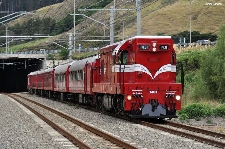 The train is seen again at MacKays Crossing, under the wires and just north of Paekakariki.