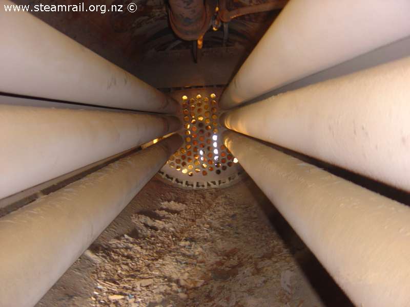 Inside the boiler. The scale came off the tubes when they were removed from the boiler.
