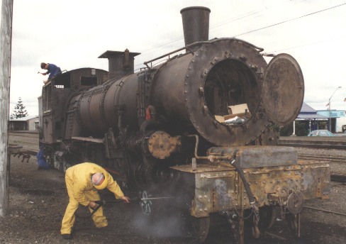 The first job that was done once the Wab arrived in Feilding on the 2nd of March 1997 was to remove the big water tanks off both sides of the locomotive. Then a local contractor was given the job of restoring them to operational condition. The outside walls of both tanks have been found to be very rusted and have required new steel to be welded in place. Most of the water baffles were also very rusted and required re-manufacturing to original specifications. One water tank has been completed and returned to the wool bank, while the other which requires a lot more work is still with the contractor.