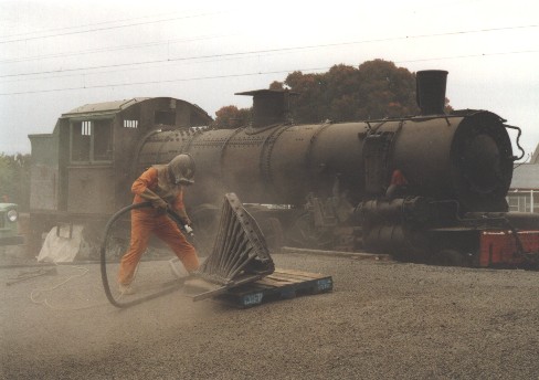 Once the water tanks had been removed, we were then able to start with the locomotive's boiler. Firstly the boiler had all the sheathing and insulation removed, then was sandblasted and painted. A visual inspection of steelwork, welds, and connections was made.