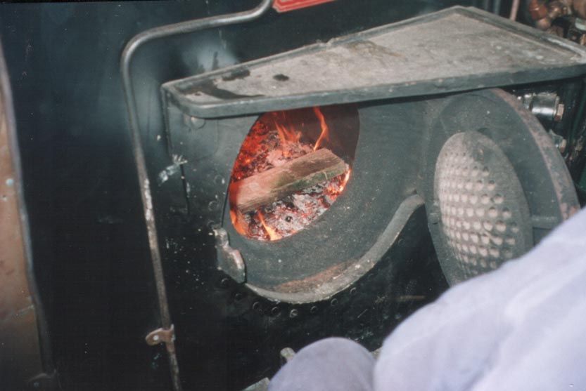 25th August 2001 On Saturday the 25th of August 2001 we lit a fire in the firebox, and started steam tests. Within four hours we had plenty of steam and began searching for leaks in the pipework. We found quite a few leaks, but these were easily fixed by replacing the washers. |