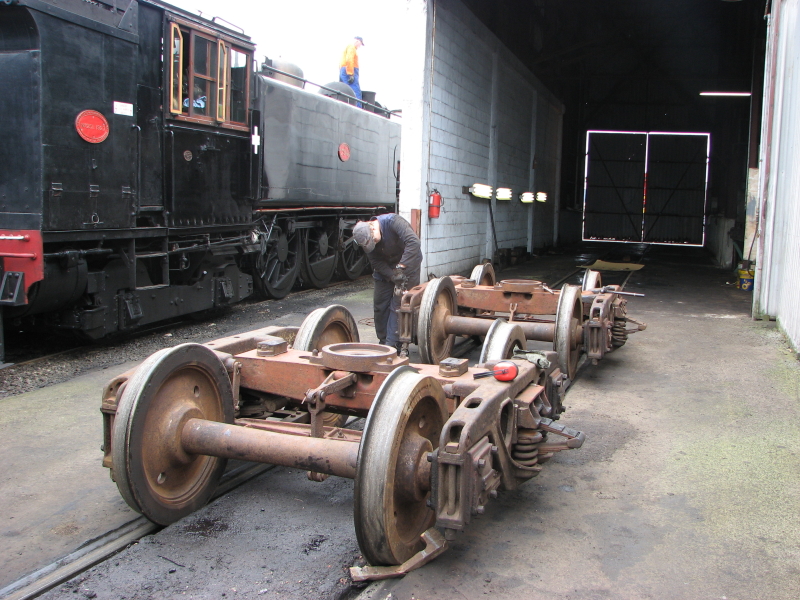 As the bogies were in need of a paint, Jason can be seen operating the angle grinder on the bogies frames after they had been needle gunned. Once clean this allows the chief fitter to check the frames for cracks.