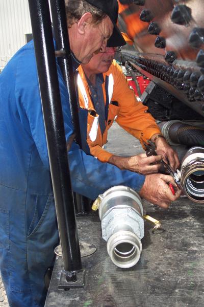 The two John's fitting the plumbing to connect to the Wab and the F.