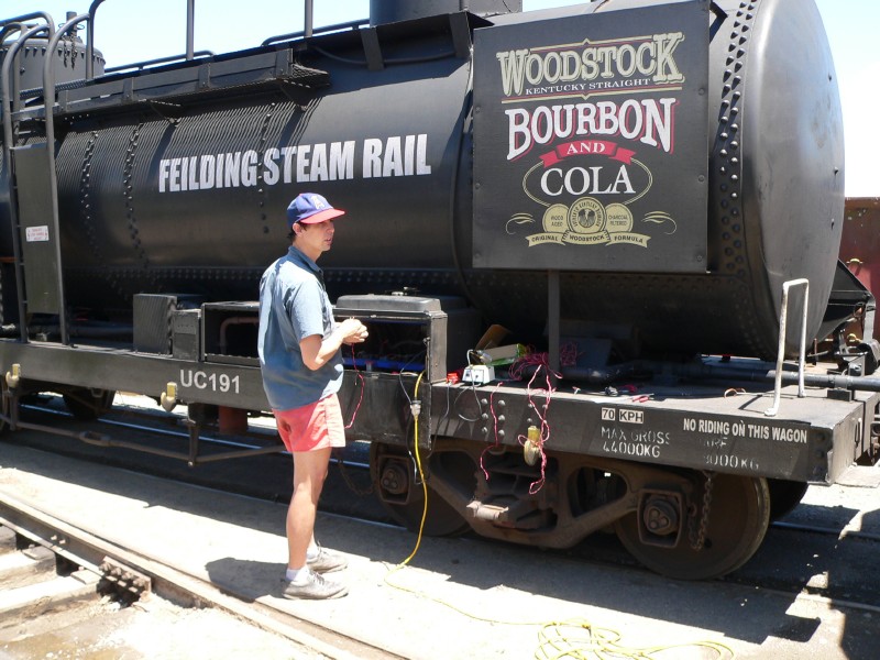 We used our gantry crane yet again to lift the wagon and remove the bogie. Mike and Stuart then replaced the bolts.