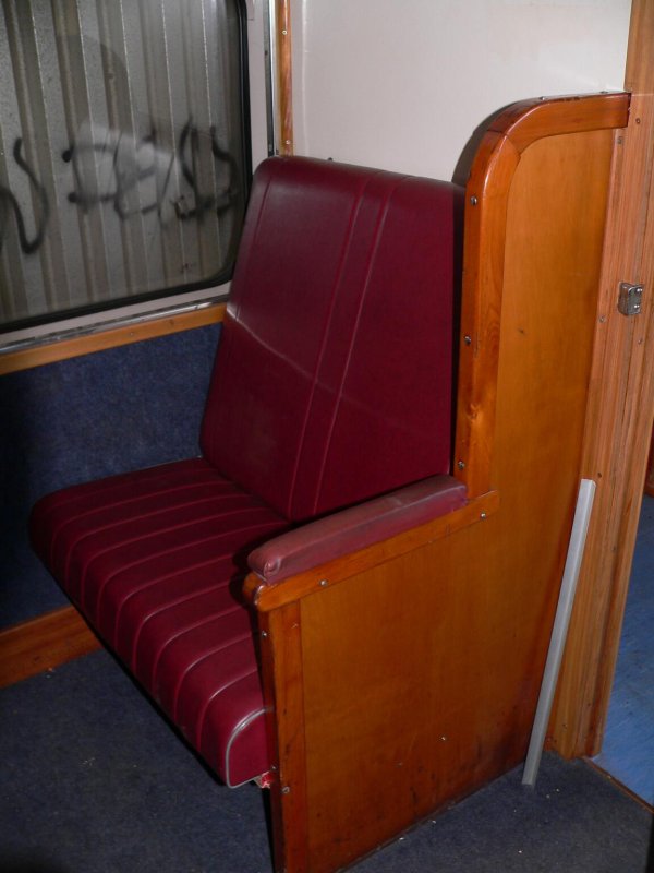 Inside A56734. This car was used on the Auckland Subbies. It is fitted with scarat flip over seats.