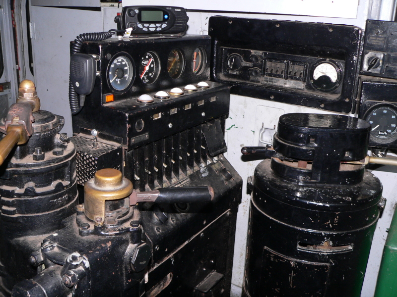 Inside the cab showing the front and back of controls. 5 July 2008 |