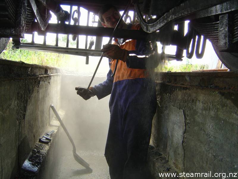 Mike Higgie cleaning the ash pan of F 163. 24 January 2004.