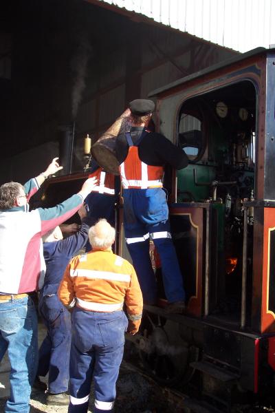 Loading the Coal Bunkers on F163 by hand. April 2003.