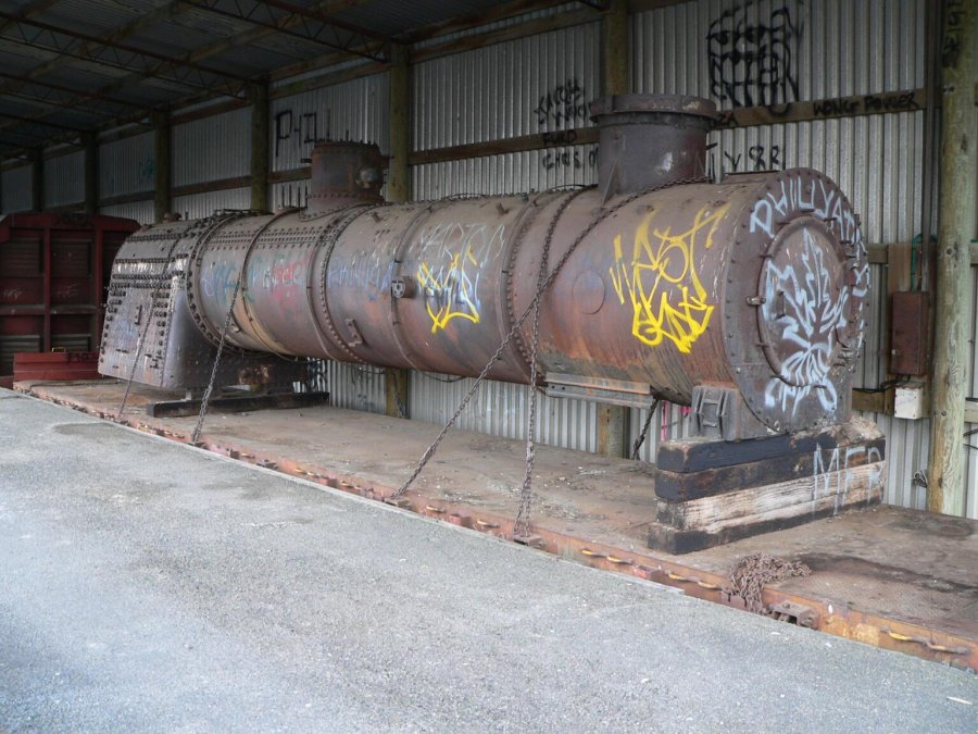 This boiler was orginally obtained as a spare for Ab608. It was used at the Darfield Brick and Tile Company in the South Island, who brought it from the Army, who in turn brought it from the NZR for steam heating etc at Burnham Military Camp. A North British boiler number 989, the boiler was orginally fitted to Ab743, and later was used on Abs 733, 661 and 793.
