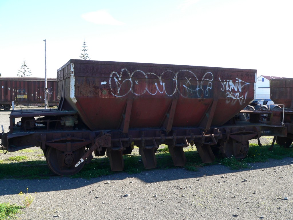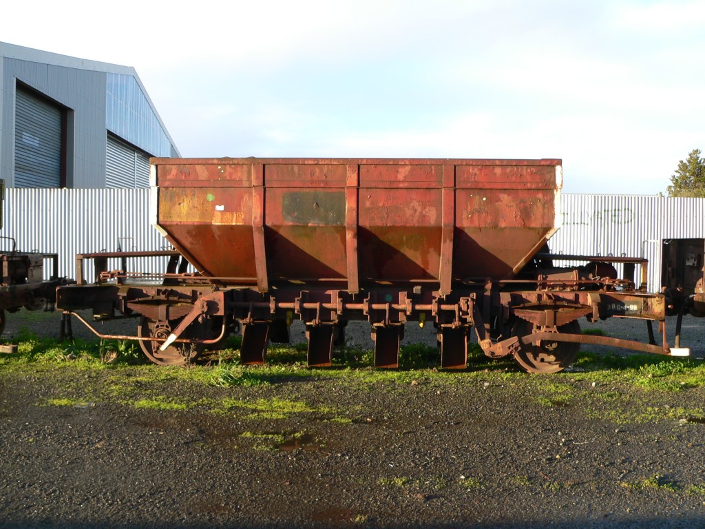 This wagons is used to discharge ballast (rock) on track.