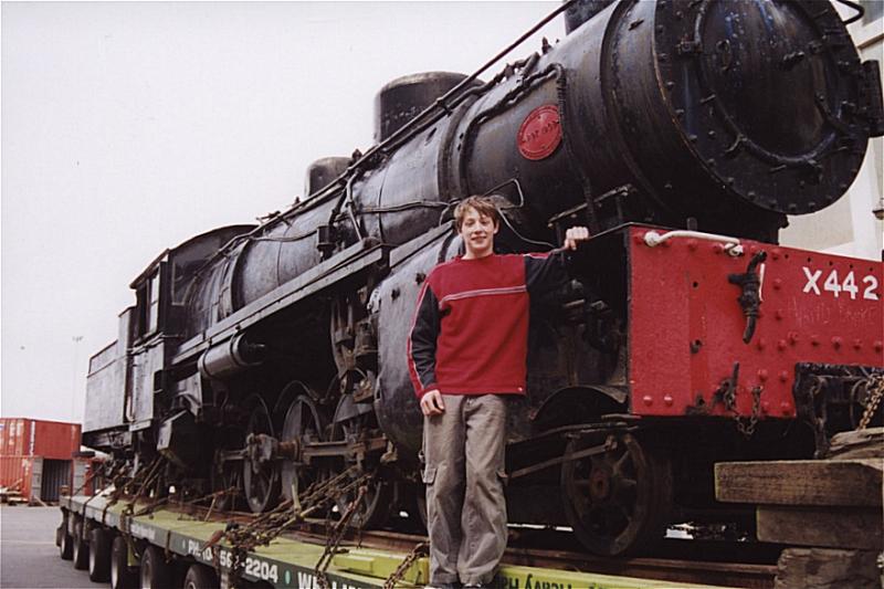 X442 at the Wellington Wharf just prior to leaving for Feilding on September 23rd 2002. This is railfan Ben Davidge. Photo by Jeff Driver & Ben Davidge