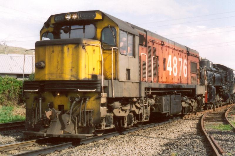 X442 on the Christchurch - Lyttelton Line behind DC4876, on the first leg of the journey from Ferrymead to Feilding. The Ferrymead main line connection is the line on the right of the picture. Photo by Colin Dash